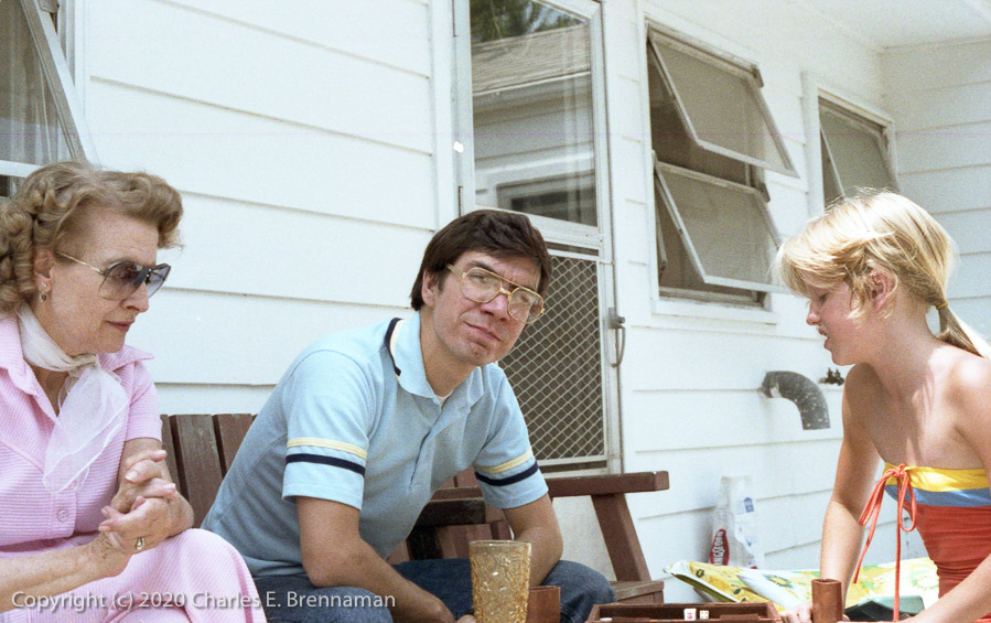 Mom Fennell watching me, and Mandy's niece Michelle playing backgammon