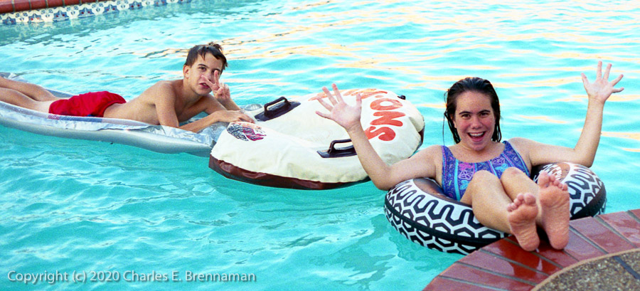 1994 Pool Construction: Pool Complete. James and Christine in the pool.