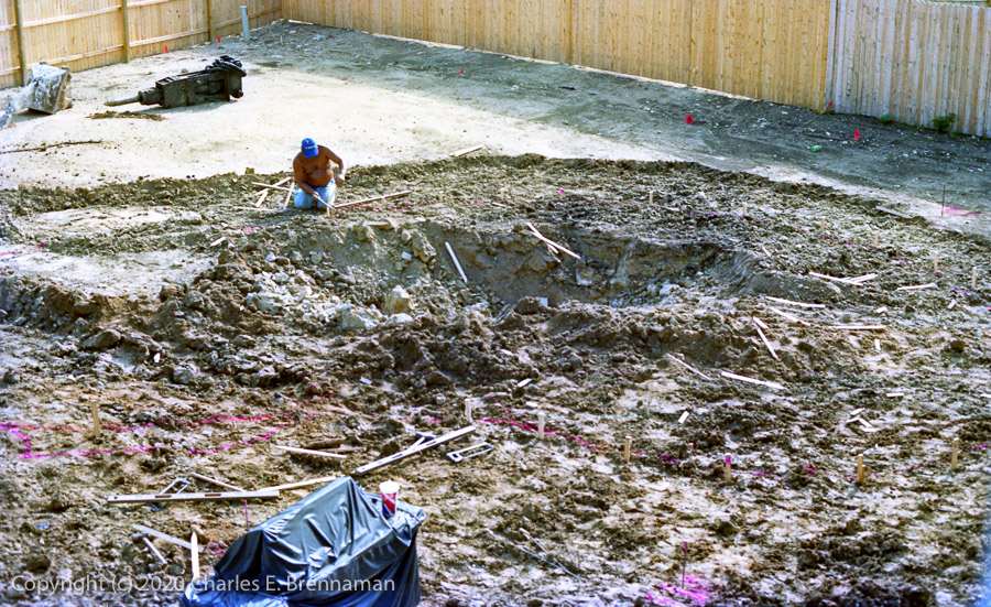 1994 Pool Construction: Marking the pool outline with stakes.