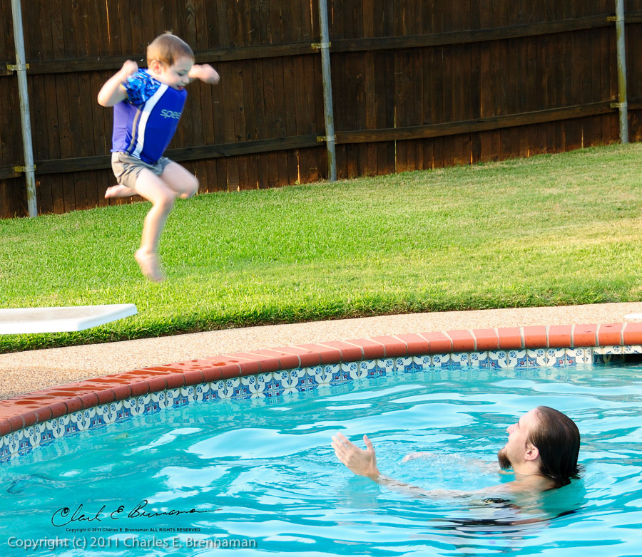 Christopher spent the the weekend of 7/9-10 at Babba and Papa's house. He spent most of his time playing games on the Wii and playing in the pool. This was the first time he was confident enough to jump off the diving board.